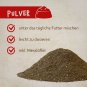 Ein ganzer Messlöffel entspricht ungefähr 2 g. Das Pulver einfach dem täglichen Futter (egal ob Nass- oder Trockenfutter) beimengen. Bei der Fütterung von Trockenfutter das ganze etwas anfeuchten und vermischen.