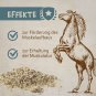 Ergänzungsfuttermittel für Pferde zur Förderung des Muskelaufbaus und der Erhaltung der Muskulatur.